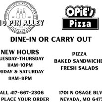 10 Pin Alley is excited to announce the opening of Opie's Pizza inside the bowling alley!