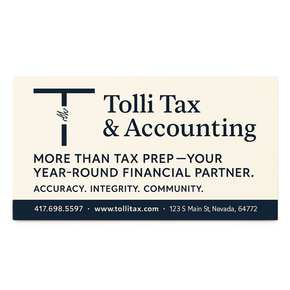 Nicole Tolli takes the time to understand your unique situation and provide solutions that are not only accurate but meaningful to your long-term financial well-being. You'll never be treated like a number-She builds long-term relationships grounded in trust, transparency, and results. Nicole started this firm to bring trustworthy, personalized tax and accounting services to individuals and small businesses in our local and surrounding communities. She is based in Nevada, serving individuals, families, and business owners nationwide. Whether you are filing a tax return, running a business, or working through a tax issue, Tolli Tax Service's goal is to simplify the process and give you confidence in your financial decisions.