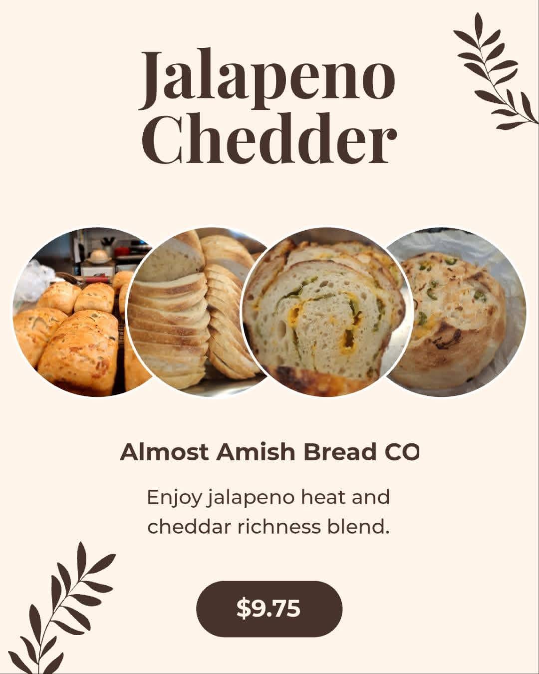 Almost Amish Bread Company, located at 204 West Cherry Street in Nevada, MO, is a locally owned bakery operated by Janice Graves that opened in March 2026, offering old-fashioned baked goods like sourdough, friendship bread, cinnamon rolls, and various sweet loaves. They are known for tangzhong cinnamon rolls, coconut-lime zucchini bread, Amish friendship bread, lemon-blueberry sourdough, and jalapeno-cheddar sourdough. They're also known locally for supplying baked goods to other spots in town, for example, pastries served at Precision Coffee Company. Additionally, they have been mentioned as part of the local farm-to-table scene. They are open Tuesday through Saturday, 7:00 a.m. to 4:00 p.m. Phone: 417-448-9982.